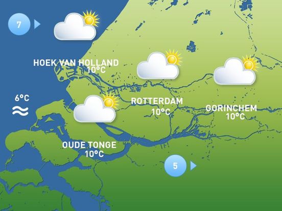 Daarbij staat een matige en in de kustprovincies vrij krachtige zuidwestenwind. Het komende etmaal is het. Het wordt 19 graden op de Wadden tot 28 in Limburg.